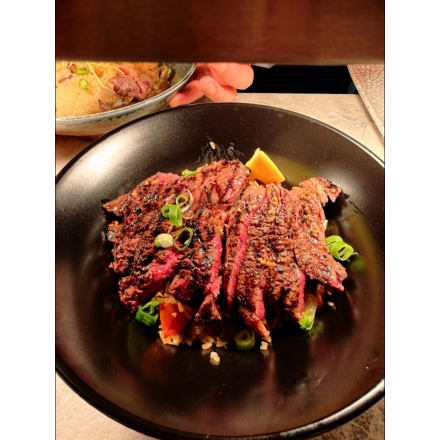 28 Day Dry Aged Beef Sirloin Marinated with Mixed Roasted mix Vegetables and chili tamarind sauce.